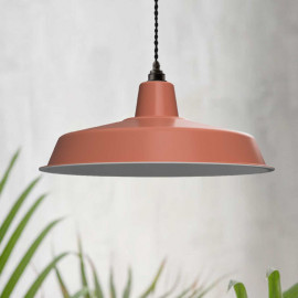 Cette suspension industrielle a une douille, un pavillon et un cordon de 1,50m de long noir, faisant ressortir le coloris rouge de la suspension.