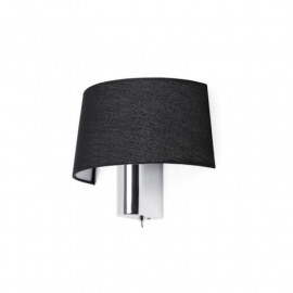 Applique murale composée d'un abat-jour en coton noir et équipée d'un interrupteur.