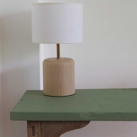 Lampe à poser en bois de hêtre et abat-jour blanc Fabriquée en France