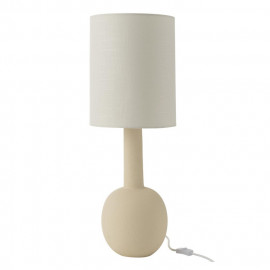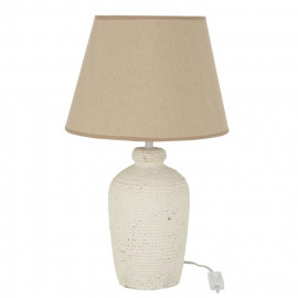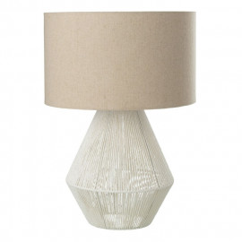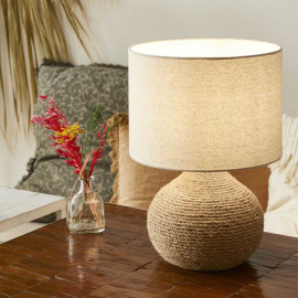 Le pied de lampe est de forme très arrondie et est entouré d'un décor en cordes naturelles qui recouvre tout le pied de lampe jusqu'à la douille. Elle est agrémentée d'un jolie abat-jour cylindrique en lin de couleur beige.