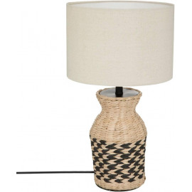 Lampe à poser en jonc. D 28 x H 35 cm. Ampoule incluse : Non, Douille : E27, Puissance max : 40W, Longueur câble : +/- 150 cm, Poids : 1.140 Kg Matière : fer, ciment, jonc. Alimentation sur secteur.