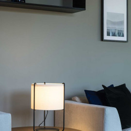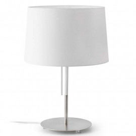 Une lampe à poser avec abat jour blanc en textile et pied en métal de style très contemporain, qui trouvera sa place dans une multitude d'intérieurs.