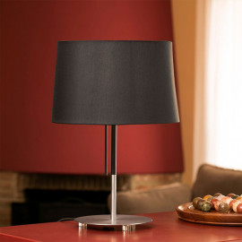 Une lampe à poser so chic avec son abat jour noir en tissu et son pied en métal. L'interrupteur placé sous l'abat jour apporte de l'allure à ce luminaire contemporain.