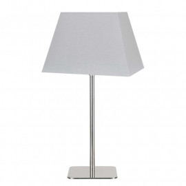 Cette lampe est composée d'un abat-jour rectangulaire pyramide gris tourterelle de longueur 24cm et d'un pied droit en métal de couleur chromée.