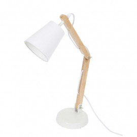 Look nordique 100% réussi avec cette lampe de bureau articulée ! Fabriquée en tasseaux de bois et posée sur une base en métal blanc, son cordon d'alimentation en tissu blanc court le long du pied et lui donne un côté très tendance.