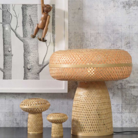 Cette jolie lampe de table raffinée évoque de façon subtile le design des années 50. La lampe champignon est très connue par son design et apporte du raffinement à la décoration avec sa couleur dorée intemporelle, son pied assez fin qui donne un design raffiné et un produit plus moderne. Son total look or lui donne un style très moderne. Elle apporte une ambiance chLampe Palawan en bambou naturel