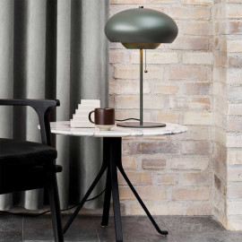 Son design avec son dôme en forme de champignon est très moderne tout en gardant une touche retro. L'utilisation de la couleur verte n'est pas anodine et fait un rappel aux anciennes lampes de bureau. Le vert à néanmoins étéLampe champignon dorée à poser