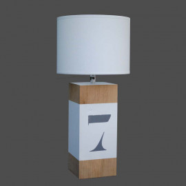 Cette lampe en bois mélange de façon raffinée le bois et la couleur blanche : la couleur blanche est présente sur le dessus du pied mais également tout autour de la lampe.