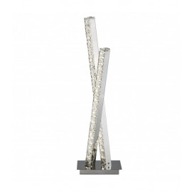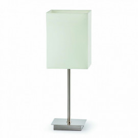 Lampe signée Faro au design épuré équipée d'un abat-jour carré blanc en coton. Le pied de cette lampe design est en métal chromé.