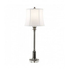 Lampe de bureau en métal, pied et socle en métal chromé. L 15 x P 14 x H 21 cm. Hauteur totale dépliée : 35.5 cm Ampoule incluse : Non, Douille : E14, Puissance max : 40W, Longueur câble : +/- 150 cm, Poids : 0.750 Kg matière : fer, Alimentation sur secteur. Pied flexible sur socle anti-dérapant, et cordon électrique avec interrupteur.