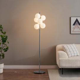 Ce lampadaire chromé présente un design contemporain et minimaliste, orné de 7 sphères en verre blanc diffusant une lumière douce et uniforme. Il doit être complété par des ampoules de type G9 (non fournies). Parfait pour illuminer avec élégance les salons, bureaux ou coins lecture, Melissa crée une ambiance lumineuse moderne et accueillante. Sa base chromée garantit stabilité et longévité, tandis