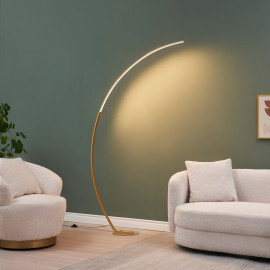 garantie 2 ans amplitude 72 hauteur 176 baseThalia est un élégant lampadaire courbé doré, d'une hauteur de 184 cm. Parfait pour une chambre ou un salon, il diffuse une agréable lumière blanc chaud (3000K) grâce à ses LED intégrées. Son design épuré et ses matériaux de qualité en font un luminaire moderne et discret qui s'intègre harmonieusement dans votre intérieur.