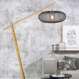 Vous souhaitez une ambiance retro chic dans votre salon ? Misez sur ce lampadaire simple et épuré constitué uniquement de matière naturelle et durable. Stabilisé grâce à un large socle, son pied articulé en bambou est très design et accueille un abat-jour, de forme tambour, en corde de jute procurant ainsi cette lumière tamisée et chaleureuse à votre intLampadaire en bois avec son abat jour métallique