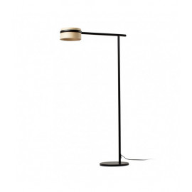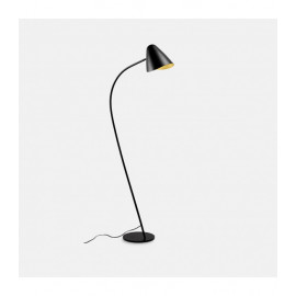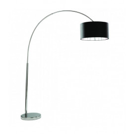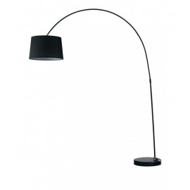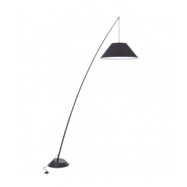 Ce lampadaire arc est en métal noir. Son abat-jour est en coton noir à l'extérieur et blanc à l'intérieur pour mieux diffuser la lumière.