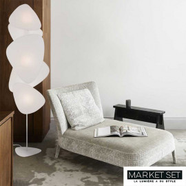 Ce lampadaire screen blanc de la marque Market Set est composé de cinq écrans blancs disposés de part et d'autre du pied en métal blanc. Il est constitué de triangles blancs différemment orientés qui donne un aspect de nuage et de pureté à ce lampadaire d'intérieur.
