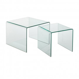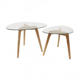 Description Lot de 2 Tables Gigognes "Trempé" 60cm Transparent Les tables gigognes ont le vent en poupe ! Découvrez ce Lot de 2 Tables Gigognes "Trempé" 60cm Transparent en bois agrémenté d'un plateau en forme de galet. Réalisé dans un verre trempé ultra-résistant et transparent, vous serez séduit par sa qualité et pourrez apporter un style moderne à votre intérieur tout en adaptant ces tables gigognes à vos besoins. Caractéristiques : Dimensions : Taille 1 : L. 60 x l. 45 x H. 43 cm Taille 2 : L. 50 x l. 38 x H. 40 cm Matières : Bois (Hevea) & Verre trempé Spécificités : Pratique & Utile Lot de 2 Tables Gigognes Forme Galet 3 Pieds en Bois Notice de Montage incluse Facile d'entretien & d'utilisation Coloris : Transparent & Naturel *Prix moyen constaté sur des sites concurrents ou prix con