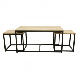 Description Lot de 3 Tables Basses "Seattle" 90cm Naturel Apportez une note industrielle chic dans votre déco avec cette fabuleuse Lot de 3 Tables Basses "Seattle" 90cm Naturel ! Composée de 3 modules, vous pourrez les positionner au gré de vos envies et de vos besoins que ce soit ensemble ou séparément. Son look tendance et design ajoutera une touche de charme supplémentaire au reste de votre mobilier et vous permettra d'y ajouter des accessoires déco ! Caractéristiques : Dimensions : Taille 1 : L. 90 x L. 50 x H. 45 cm Taille 2 : L. 40 x l. 40 x H. 38 cm Matières : Bois, Panneaux de Particules & Métal Spécificités : Tendance & Pratique Lot de 3 Tables Basse Piètement en Métal Notice de montage inclus Facile d'entretien & d'utilisation Coloris : Naturel & Noir *Prix moyen constaté sur des