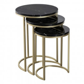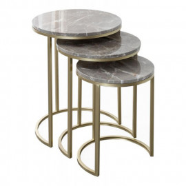 Description Lot de 3 Tables d'Appoint Gigogne "Abeille" 61cm Marron Ce Lot de 3 Tables d'Appoint Gigogne "Abeille" 61cm Marron combine élégance et praticité, idéal pour optimiser l'espace avec style. Chaque table présente un plateau en marbre, apportant une touche sophistiquée et luxueuse, associé à un piètement en métal noir pour une stabilité et une durabilité accrues. Le design gigogne permet d’imbriquer les tables pour un rangement compact ou de les disposer séparément selon vos besoins, offrant une flexibilité parfaite pour l’aménagement de votre intérieur ! Caractéristiques : Dimensions : Taille 1 : L. 43 x l. 43 x H. 45 cm Taille 2 : L. 52 x l. 52 x H. 50 cm Taille 3 : L. 61 x l. 61 x H. 55 cm Matières : 70% Marbre & 30% Métal Spécificités : Élégant & Pratique Lot de 3 tables d'appo
