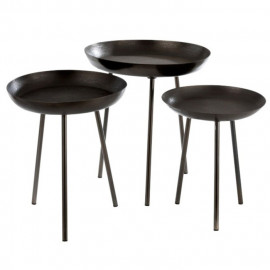 Description Lot de 3 Tables Gigognes "Oxidize" 80cm Noir Utilisez dès à présent ce somptueux Lot de 3 Tables Gigognes "Oxidize" 80cm Noir de style industriel que vous pourrez placer ensemble ou séparément selon vos besoins et vos envies. Solide et robuste grâce à son mélange d'aluminium et de métal, vous pourrez y disposer les objets déco de votre choix pour sublimer et égayer votre pièce de vie ! Caractéristiques : Dimensions : Taille 1 : D. 80 x H. 40 cm Taille 2 : D. 60 x H. 35 cm Taille 3 : D. 50 x H. 30 cm Matières : Aluminium & Métal Spécificités : Tendance & Pratique Lot de 3 Tables Gigognes Forme Ronde Facile d'utilisation & d'entretien Poids : 20,38 kg Coloris : Noir & Vert *Prix moyen constaté sur des sites concurrents ou prix conseillé par le fournisseur. Fiche technique Dimensi