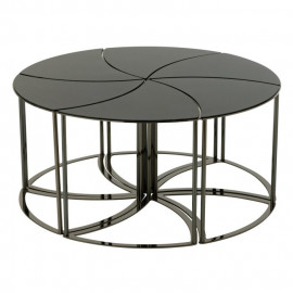 Description Lot de 6 Tables d'Appoint "Tornado" 48cm Noir Donnez une touche moderne et originale à votre espace avec ce fascinant Lot de 6 Tables d'Appoint "Tornado" 48cm Noir ! Composé de six tables d'appoint au design original, cet ensemble polyvalent offre une solution fonctionnelle et esthétique pour votre intérieur. Ces tables d'appoint en métal sont conçues pour durer et ajouter une touche moderne à votre décoration. Leur coloris noir les rend parfaites pour s'adapter à différents styles d'intérieur. Disposées ensemble, elles formeront une table basse. Séparément, ces tables d'appoint apportent une polyvalence à votre espace tout en créant un impact visuel remarquable ! Caractéristiques : Dimensions : Taille totale : D. 100 x H. 48 cm Taille à l'unité : L. 17 x l. 17 x H. 48 cm Matiè