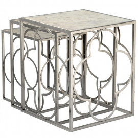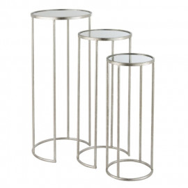 Description Lot de 3 Tables Gigognes Métal "Klee" 55cm Argent Ce magnifique Lot de 3 Tables Gigognes Métal "Klee" 55cm Argent pourra être divisé et réparti dans différentes pièces de la maison comme le salon, la chambre ou encore le bureau. Idéal pour y déposer des éléments décoratifs, des cadres photos, des magazines et bien d'autres objets. Leur design chic à motifs de trèfles en métal accompagné d'un plateau effet marbre apportera une subtile touche de classe à votre intérieur. Craquez pour ce lot de tables gigognes très tendance ! Caractéristiques : Dimensions : Petite : L. 38 x l. 38 x H. 46 cm Moyenne : L. 43 x l. 43 x H. 50 cm Grande : L. 47 x l. 47 x H. 55 cm Matières : Métal Spécificités : Vendu en lot de 3 Design & Épuré Plateau effet marbre Tables gigognes Nombre de colis : 1 Co