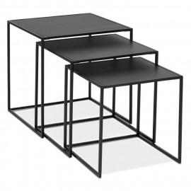 Description Lot de 3 Tables Gigognes en Métal "Lino" 50cm Noir Optez pour la fonctionnalité de ce ravissant Lot de 3 Tables Gigognes en Métal "Lino" 50cm Noir qui s'imbriquent les unes dans les autres que vous pourrez utiliser ensemble ou séparément ! Ce trio rectiligne se distingue par la finesse de sa structure et sera du plus bel effet dans un intérieur minimaliste et contemporain. De plus, sa couleur noire en fait un produit indémodable et intemporel qui se mariera à merveille avec le reste de votre mobilier ! Caractéristiques : Dimensions : Table 1 : L. 50 x l. 50 x H. 50 cm Table 2 : L. 45 x l. 45 x H. 45 cm Table 3 : L. 40 x l. 40 x H. 40 cm Largeur de la tablette : 47 cm Longueur de la tablette : 47 cm Épaisseur de la tablette : 1,2 cm Matières : Bois & Métal Spécificités : Moderne