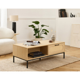 La simplicité de votre table basse La table basse Nagato, avec ses 110 cm de longueur, est un meuble simple et fonctionnel. Inspirée du design propre à toute la collection éponyme, cette table arbore une façade en cannage arrondi. Elle a un petit look vintage, du plus bel effet quand il vient s’intégrer dans votre décoration. Le retour à des matériaux organiques est privilégié dans les tendances actuelles ; la collection Nagato s’intègre parfaitement dans ces nouveaux codes du design. Sa conception sobre et minimaliste la rend discrète, mais élégante et pratique. Ses détails en métal (poignées et pieds) soulignent sa robustesse. Ses finitions soignées et ses matériaux de qualité permettent de la garder longtemps, en parfait état, sans avoir besoin d’un entretien trop poussé. Un chiffon hum