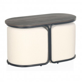 Description Table Basse & 2 Poufs Bouclette "Moka" 78cm Crème Optimisez votre espace avec cette Table Basse & 2 Poufs Bouclette "Moka" 78cm Crème, une pièce à la fois fonctionnelle et élégante. Ce mobilier design est parfait pour les salons modernes, offrant à la fois une table basse pratique et deux poufs matelassés au tissu bouclette doux et tendance. Avec sa forme ovale, cette table basse crée une ambiance conviviale tout en permettant un rangement intelligent grâce à ses poufs qui se glissent facilement en dessous. Fabriquée à partir de bois, métal et tissu bouclette, elle est robuste et durable. Idéale pour les petits espaces, elle combine esthétique et fonctionnalité, tout en ajoutant une touche de chaleur à votre intérieur ! Caractéristiques : Dimensions : L. 78 x l. 39 x H. 45 cm M