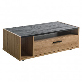 Craquez pour la table basse MODE. À la fois tendance et raffinée, cette table basse ira à la perfection chez vous ! Vous pourrez tout aussi bien l'installer dans votre salon devant votre canapé que dans un bureau devant un fauteuil. Ses deux plateaux vous permettront d'exposer toutes sortes d'affaires, objets de décoration, plantes, mais également des catalogues et des livres. Vous pourrez également ranger à l'abri vos télécommandes dans son petit tiroir sans risque de les perdre ! Sa couleur chêne est parfaitement mise en avant par son cadre noir qui apporte du contraste et de la finesse. Pour une parfaite harmonie, n'hésitez pas à l'associer à d'autres meubles de la même collection ! Moderne et tendance, la collection MODE associe avec brio les tons clairs d'un décor chêne et le ton noir