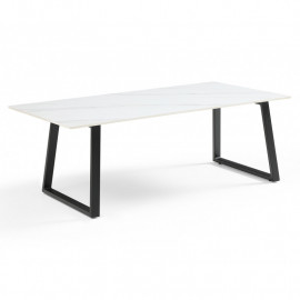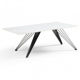 Découvrez la table basse NEVADA 02. La table basse personnalisée adaptée à vos envies ! Son plateau en céramique pleine masse de 15mm blanc marbré mat est lumineux et robuste. La céramique lui confère des qualités remarquables : résistance aux rayures, taches et différences de températures. Son piètement luge en métal noir vous assure une stabilité et une robustesse sans faille ! Associez-la à la table de repas extensible identique pour une décoration harmonieuse. Découvrez notre collection de tables basses en céramique personnalisables : une palette de 6 plateaux et 7 piétements soit 42 déclinaisons ! Choisissez votre plateau en céramique parmi les tons gris, blancs, marbrés et noirs, et associez-le à un piétement en métal. Découvrez les 42 déclinaisons sous les noms suivants : Oregon , A