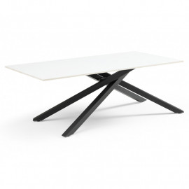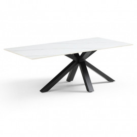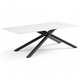 Découvrez la table basse NEVADA 06. La table basse personnalisée adaptée à vos envies ! Son plateau en céramique pleine masse de 15mm blanc marbré mat est lumineux et robuste. La céramique lui confère des qualités remarquables : résistance aux rayures, taches et différences de températures. Son piètement étoile ajouré en métal noir vous assure stabilité, robustesse et finesse ! Associez-la à la table de repas extensible identique pour une décoration harmonieuse. Découvrez notre collection de tables basses en céramique personnalisables : une palette de 6 plateaux et 7 piétements soit 42 déclinaisons ! Choisissez votre plateau en céramique parmi les tons gris, blancs, marbrés et noirs, et associez-le à un piétement en métal. Découvrez les 42 déclinaisons sous les noms suivants : Oregon , Ari