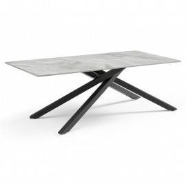 Laissez-vous charmer par la table basse DAKOTA 06. La table basse personnalisée adaptée à vos envies ! Son plateau en céramique Italienne pleine masse de 15mm gris marbré laqué est lumineux et robuste. La céramique lui confère des qualités remarquables : résistance aux rayures, taches et différences de températures. Son piètement étoile ajouré en métal noir vous assure stabilité, robustesse et finesse ! Associez-la à la table de repas extensible identique pour une décoration harmonieuse. Découvrez notre collection de tables basses en céramique personnalisables : une palette de 6 plateaux et 7 piétements soit 42 déclinaisons ! Choisissez votre plateau en céramique parmi les tons gris, blancs, marbrés et noirs, et associez-le à un piétement en métal. Découvrez les 42 déclinaisons sous les no