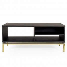 Description Table Basse Design "Pimlico" 100cm Charbon Profitez de cette superbe Table Basse Design "Pimlico" 100cm Charbon pour agrémenter votre intérieur avec élégance ! Son design noir et or ajoutera une touche de modernité à votre salon ! Rangez vos revues dans les espaces de rangement pour faire de la place dans votre pièce ! Vous allez l'adorer ! N'oubliez pas de jeter un coup d'oeil au reste de la collection "Pimlico" ! Caractéristiques : Dimensions : L. 100 x P. 44 x H. 45 cm Matières : Plateau : Panneaux alvéolaires - Placage Chêne Piètement : Métal Les + du produit : 3 Niches de rangement Matériaux & Finitions Haut de Gamme Excellente stabilité Créateur : Woodman Fabriqué en Europe Produit éco-responsable - FSC Certification Entretien & Montage : Nettoyez avec un chiffon en coton