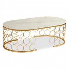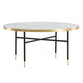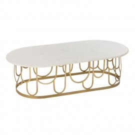 Description Table Basse Design en Marbre "Moza" 122cm Or Cette Table Basse Design en Marbre "Moza" 122cm Or est le parfait mélange d'élégance et de modernité. Son plateau en marbre offre une surface luxueuse, tandis que le piètement ajouré en métal doré apporte une touche aérienne à votre espace de vie. Conçue pour allier esthétique et fonctionnalité, cette table basse ovale peut supporter jusqu'à 50 kg, ce qui en fait un choix pratique pour y déposer vos livres, boissons ou objets décoratifs ! Caractéristiques : Dimensions : L. 122 x l. 61 x H. 35 cm Matières : 50% Marbre & 50% Métal Spécificités : Chic & Tendance Console basse design Plateau en marbre Piètement ajouré Poids max supporté : 50 kg Poids : 38,3 kg Coloris : Or *Prix moyen constaté sur des sites concurrents ou prix conseillé