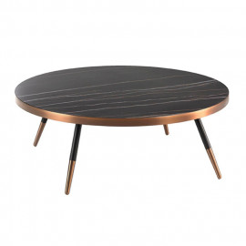 Description Table Basse Design en Marbre "Acira" 90cm Noir Cette Table Basse Design en Marbre "Acira" 90cm Noir originale au style élégant et sophistiqué est idéale pour apporter la touche de chaleur et de style que vous recherchez à votre salon ou coin lecture, ainsi que pour apporter une touche différente et unique grâce à la finition de son bord circulaire et aux terminaisons des pieds en acier chromé couleur bronze. Caractéristiques : Dimensions : D. 90 x H. 30 cm Matières : Plateau : Porcelaine Structure : Marbre Pieds : Acier & Métal placage Chromé fini en Bronze Spécificités : Tendance & Moderne Table d'Appoint design Forme Ronde Bord Circulaire Nombre de colis : 2 Poids : 25 kg Coloris : Noir *Prix moyen constaté sur des sites concurrents ou prix conseillé par le fournisseur. Fiche
