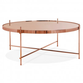 Description Table Basse Design en Verre "Rona" 83cm Cuivre Vos invités ne tariront pas d'éloges sur cette fantastique Table Basse Design en Verre "Rona" 83cm Cuivre aussi élégante que pratique ! Sa structure métallique originale associée au verre miroir de la tablette créera une véritable osmose visuelle dans votre salon. De plus, sa couleur noire en fait un produit indémodable et intemporel qui apportera une touche chic et raffiné à la décoration de votre intérieur. Alors, n'attendez plus et commandez la vôtre ! Caractéristiques : Dimensions : D. 83 x H. 35 cm Épaisseur de la tablette : 3 cm Matières : Verre trempé & Métal Spécificités : Moderne & Design Table basse design Forme ronde Protection pour les sols Livré non monté Nombre de colis : 1 Poids : 15,9 kg Coloris : Cuivre *Prix moyen
