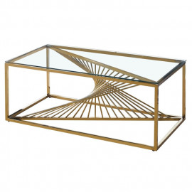 Description Table Basse Design Verre & Métal "Linea" 120cm Or Cette superbe Table Basse Design Verre & Métal "Linea" 120cm Or fera la différence dans votre séjour grâce à son allure chic et luxueuse. Son coloris or et son plateau en verre transparent se marient à la perfection et instaureront une atmosphère digne des appartements les plus luxueux. Installez-la simplement près de votre canapé ou de votre meuble TV, et voyez comme elle se mariera à la perfection avec le reste de votre mobilier ! Caractéristiques : Dimensions : L. 120 x l. 60 x H. 40 cm Matière : Métal (Inox) & Verre Spécificités : Chic & Luxueux Table basse design Plateau en verre Piètement renforcé Facile d'entretien & d'utilisation Nombre de colis : 1 Coloris : Or *Prix moyen constaté sur des sites concurrents ou prix cons