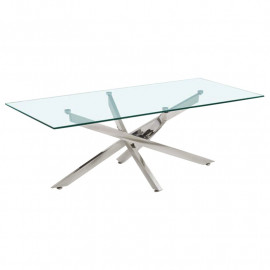 Craquez pour la table basse rectangulaire L. 120 cm en verre trempé avec piètement en métal chromé ICE. Cette table basse apportera un style minimaliste et contemporain à votre intérieur ! Placez-la aussi bien dans votre séjour, devant votre canapé, que devant des fauteuils dans un bureau. Profitez de son grand plateau pour ranger des objets de décoration, des catalogues ou encore vos télécommandes afin de les avoir à portée de main. La transparence du verre permet à la table de s'intégrer dans divers styles de décoration, tout en donnant une impression d'espace et de légèreté. Son design minimaliste est accentué par un piètement croisé en forme d'étoile, fabriqué en métal chromé, qui ajoute une touche moderne et sophistiquée à l'ensemble. N'hésitez pas à l'associer aux meubles en verre de