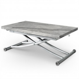 Description Table Basse Rectangulaire "Higher" 114cm Gris Idéale pour les petits salons, cette magnifique Table Basse Rectangulaire "Higher" 114cm Gris se transformera en un clin d'oeil en une table de repas spacieuse ! Très pratique, elle sera la pièce parfaite pour recevoir vos convives avec confort. Caractéristiques : Dimensions : Table Basse : L. 57 x P. 100 x H. 39-76,3 cm Ouverte : L. 114 x P. 100 x H. 39-76,3 cm Matières : Bois, Métal & Mélaminé Spécificités : Table basse relevable Réhaussable grâce à une simple poignée & un système à roulettes sur 4 pieds Peut accueillir jusqu'à 6 couverts Pieds en métal robustes Design contemporain Livré démonté avec notice de montage Montage facile Poids : 24 kg Nombre de colis : 1 Coloris : Effet Marbre Gris *Prix moyen constaté sur des sites co
