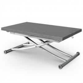 Description Table Basse Rectangulaire "Higher" 114cm Gris Foncé Idéale pour les petits salons, cette magnifique Table Basse Rectangulaire "Higher" 114cm Gris Foncé se transformera en un clin d'oeil en une table de repas spacieuse ! Très pratique, elle sera la pièce parfaite pour recevoir vos convives avec confort. Caractéristiques : Dimensions : Table Basse : L. 57 x P. 100 x H. 39-76,3 cm Ouverte : L. 114 x P. 100 x H. 39-76,3 cm Matières : Bois, Métal & Mélaminé Spécificités : Table basse relevable Réhaussable grâce à une simple poignée & un système à roulettes sur 4 pieds Peut accueillir jusqu'à 6 couverts Pieds en métal robustes Design contemporain Livré démonté avec notice de montage Montage facile Poids : 24 kg Nombre de colis : 1 Coloris : Effet Béton *Prix moyen constaté sur des si