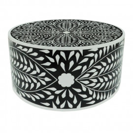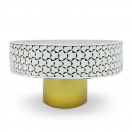 Description Table Basse Ronde "Arabesque" 71cm Noir & Blanc Cette Table Basse Ronde "Arabesque" 71cm Noir & Blanc est une pièce pratique et tendance qui apportera une touche de modernité à votre espace. Avec son motif géométrique en noir et blanc, cette table basse au style arty est un véritable élément de décoration. Fabriquée en bois et en métal, elle est à la fois robuste et élégante. La forme ronde de la table offre un espace de rangement généreux et convivial, idéal pour disposer des magazines, des collations ou des objets décoratifs. Livrée en un seul colis, cette table basse pèse 7,08 kg, ce qui la rend facile à déplacer et à positionner dans votre intérieur. Ajoutez cette pièce design à votre espace pour une ambiance contemporaine ! Caractéristiques : Dimensions : L. 71 x l. 71 x H