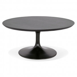 Découvrez la table basse ZARA. Une jolie table basse de 90 cm de diamètre, simple et spacieuse. De couleur noire, elle est discrète et moderne, elle trouvera sa place dans un salon lumineux, et sera mise en valeur sur un tapis clair. Son plateau en bois est solide et laisse apparaitre les veines du bois pour un effet naturel. Son trépied épais et incliné vous assure une grande solidité et stabilité de la table basse. On aime sa simplicité et son élégance sans chichi. Existe en marron foncé. Caractéristiques : Table basse ZARA. COULEUR : Noir. COMPOSITION : Bois lamellé-collé. PLATEAU : Bois lamellé-collé finition légèrement brillant / Epaisseur 2 cm au centre et 0,5 cm sur les bords biseautés. PIETEMENT : Trépied en bois / Patins en feutre sous les pieds. DIMENSIONS GENERALES APPROXIMATIVE