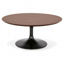 Découvrez la table basse ZARA. Une jolie table basse de 90 cm de diamètre, simple et spacieuse. De couleur marron foncé, elle est discrète et moderne, elle trouvera sa place dans un salon lumineux, et sera mise en valeur sur un tapis clair. Son plateau en bois est solide et laisse apparaitre les veines du bois pour un effet naturel. Son trépied épais et incliné vous assure une grande solidité et stabilité de la table basse. On aime sa simplicité et son élégance sans chichi. Existe en noir. Caractéristiques : Table basse ZARA. COULEUR : Bois foncé. COMPOSITION : Bois lamellé-collé. PLATEAU : Bois lamellé-collé finition légèrement brillant / Epaisseur 2 cm au centre et 0,5 cm sur les bords biseautés. PIETEMENT : Trépied en bois / Patins en feutre sous les pieds. DIMENSIONS GENERALES APPROXIM