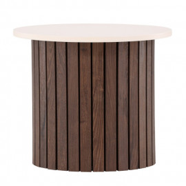 Description Table d'Appoint Design "Visingsö" 52cm Beige Cette Table d'Appoint Design "Visingsö" 52cm Beige est l'ajout parfait pour un intérieur chic et moderne. Avec ses dimensions de 52 cm de diamètre et une hauteur de 44 cm, elle s'intègre harmonieusement dans tout espace, offrant à la fois style et fonctionnalité. Son plateau en MDF certifié FSC, de 2 cm d'épaisseur, est complété par un fini beige élégant, tandis que son piètement cylindrique apporte une touche chaleureuse avec son coloris marron. La structure interne en acier garantit une robustesse allant jusqu'à 50 kg, tout en étant légère avec un poids de 10,5 kg. Cette table d'appoint pratique et tendance combine harmonieusement les matériaux pour créer un meuble à la fois esthétique et durable ! Caractéristiques : Dimensions : D