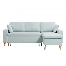 Description Canapé d'Angle Réversible Convertible "Koli" 229cm Bleu Clair Choisissez ce fantastique Canapé d'Angle Réversible Convertible "Koli" 229cm Bleu Clair au style scandinave avec ses pieds en bois qui apportera une touche cosy et cocooning à la déco de votre salon ! Le petit plus de ce produit : sa méridienne réversible qui vous permet de l'adapter selon la configuration de votre intérieur au gré de vos envies et de vos besoins. Disponible en plusieurs coloris, vous trouverez facilement la couleur faite pour votre espace de vie. Alors, qu'attendez-vous pour craquer ? Caractéristiques : Dimensions : L. 227 x l. 147 x H. 89 cm Pieds : H. 15 cm Dossier : H. 40 cm Assise : L. 189 x l. 56 x H. 50 cm Méridienne : L. 118 x l. 67 cm Couchage : L. 192 x 132 cm Accoudoirs : H. 58 cm Coffre d