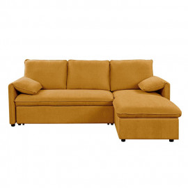 Description Canapé d'Angle Réversible Convertible "Reggie" 233cm Jaune Adoptez ce merveilleux Canapé d'Angle Réversible Convertible "Reggie" 233cm Jaune ! Son design moderne et ses fonctionnalités en font un choix idéal. Grâce à son angle réversible, il s'adapte facilement à votre espace de vie. De plus, ses accoudoirs ajustables offrent un confort supplémentaire. Ce canapé d'angle dispose d'un coffre de rangement intégré vous permettant de garder votre salon bien rangé. Avec ses 3 places spacieuses et ses assises confortables, il est idéal pour des moments de détente en famille ou entre amis ! Caractéristiques : Dimensions : Canapé : L. 233 x l. 159 x H. 96 cm Couchage : L. 203 x l. 115 cm Méridienne : L. 65 x l. 119 cm Coffre : L. 145 x l. 60 x H. 23 cm Assise : L. 203 x l. 49 x H. 49 cm