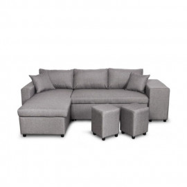 Description Canapé d'Angle Réversible Convertible Niche à Droite "Kraky II" 241cm Gris Tombez sous le charme de ce ravissant Canapé d'Angle Réversible Convertible Niche à Droite "Kraky II" 241cm Gris qui sublimera votre décoration intérieur tout en vous offrant confort et praticité. En effet, ce canapé a été pensé pour vous offrir gain de place grâce à son grand coffre de rangement dissimulé sous la méridienne, pour un salon toujours bien rangé. Et grâce à ses poufs stockés sous l'accoudoir, qui feront d'excellente assises d'appoint pour vos invités, la convivialité sera toujours garantie chez vous ! Caractéristiques : Dimensions : L. 241 x l. 146 x H. 81 cm Assise : L. 195 x l. 54 x H. 44 cm Couchage : L. 136 x l. 195.5 cm Méridienne : L. 118 x l. 70 cm Dossier : H. 37 cm Pouf : L. 30 x l