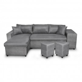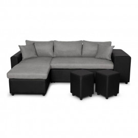 Description Canapé d'Angle Réversible Convertible Niche à Droite "Bobi" 264cm Gris & Noir Offrez-vous ce fabuleux Canapé d'Angle Réversible Convertible Niche à Droite "Bobi" 264cm Gris & Noir ! Ses fonctionnalitées diverses telles que son lit 2 places, son large coffre sous la méridienne et ses têtières réglables vous apporteront un maximum de confort. Sa niche fixe qui permet de ranger ses 2 poufs vous offrira 2 assises supplémentaires. Un must à avoir dès maintenant ! Caractéristiques : Dimensions : L. 264 x l. 162 x H. 75 cm Pieds : H. 4 cm Dossier : H. 23 cm Assise : L. 210 x l. 57 x H. 43 cm Pouf : L. 37 x l. 28 x H. 41 cm Méridienne : L. 162 x l. 70 x H. 75 cm Couchage : L. 121 x l. 210 cm Accoudoirs : H. 52 cm Coffre de Rangement : L. 154 x l. 68 x H. 22 cm Coussins : L. 35 x l. 35