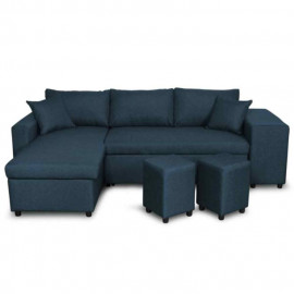 Description Canapé d'Angle Réversible Convertible Niche à Droite "Bobi" 264cm Bleu Pétrole Laissez-vous séduire par ce sublime Canapé d'Angle Réversible Convertible Niche à Droite "Bobi" 264cm Bleu Pétrole convertible et réversible avec un coffre de rangement et deux poufs ! Vous allez passer des purs moments de détente et de convivialité grâce à son confort ! Ce canapé moderne possède des courbes chaleureuses et accueillantes, il est élégant et agréable au toucher. De plus, vous pouvez changer l'angle de la méridienne et sortir les deux poufs de la niche à droite quand vous recevez des invités ! Donc, n'attendez plus et commandez-le vite ! Caractéristiques : Dimensions : L. 264 x l. 162 x H. 75 cm Coffre de Rangement : L. 154 x l. 68 x H. 22 cm Dossier : H. 23 cm Assise : L. 210 x l. 57 x