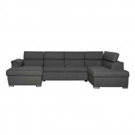 Description Canapé Panoramique Convertible "Ascobar" 365cm Noir & Gris Choisissez de passer un agréable moment dans votre salon avec à ce Canapé Panoramique Convertible "Ascobar" 365cm Noir & Gris. Son design moderne, grâce à sa forme en U, en fait un meuble de choix dans un salon à l'allure contemporaine. De plus, s on espace de couchage aux belles dimensions vous permettra d'inviter à dormir tous vos convives dans le confort et avec convivialité. Alors qu'attendez-vous pour offrir un peu de renouveau à votre salon ? Caractéristiques : Dimensions : L. 365 x P. 165 x H. 80 cm Matières : Structure en bois Assise en tissu & Polyuréthane Spécificités : Moderne & Design Canapé d'angle sur pieds Convertible Pouvant accueillir jusqu’à 6 places assises À monter soi-même Nombre de colis : 3 Colori